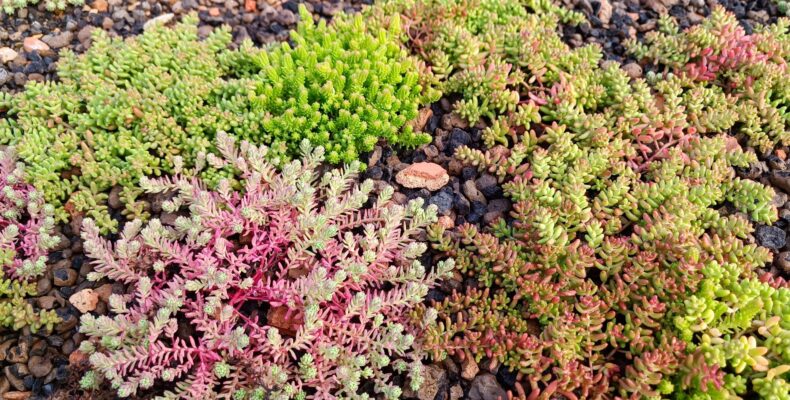 Zopár náletových burín som pretrhal, polievanie 1x denne stále beží. Odhadom 50% plochy je zarastenej zeleňou. Medzičasom niektoré rastliny kvitli nažlto a nabielo. Práce na druhej streche pokračujú, materiál je spoly pripravený, pokračovanie nabudúce 🙂